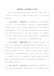 县级党校加强师资培养,优化队伍结构,提升教学科研能力,注重实践锻炼,强化服务意识。下面是网友整理分享的县级党校人才队伍建设工作汇报相关资料,供大家学习参考,喜欢就分享吧!