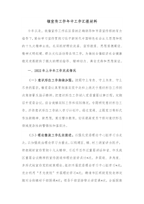 上半年宣传工作围绕中心任务,创新形式,强化阵地建设,提升影响力,成效显著,下一步如何更好推进?以下由网友整理分享的镇宣传工作年中工作汇报材料相关文档,供您学习参考,喜欢就分享吧!
