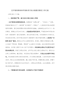 区市场局积极推进高标准市场体系建设,多举措并行,成效显著,市场环境持续优化!公文包网友为您分享整理的“区市场局高标准市场体系行动方案落实情况工作汇报”范文资料,以供您参考学习之用,希望喜欢。