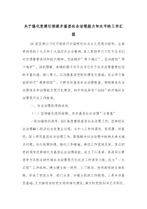 加强党组织建设,发挥核心作用,提升基层社会治理效能,促进社会和谐稳定。以下是阿拉网友分享的“关于强化党建引领提升基层社会治理能力和水平的工作汇报”,供您学习参考,希望有所用途!