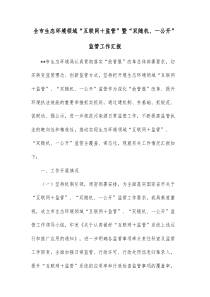 全市生态环境领域加强互联网监管,推进双随机一公开,提升环境治理效能,保障生态安全。下面是小编为您整理的全市生态环境领域互联网监管暨双随机一公开监管工作汇报范例,仅供参考,希望对您有所帮助。