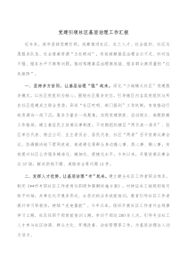 党建引领下,社区基层治理工作扎实推进,机制创新,服务优化,居民满意度显著提升,共建和谐家园!下面是小编为您整理的党建引领社区基层治理工作汇报范例,仅供参考,希望对您有所帮助。