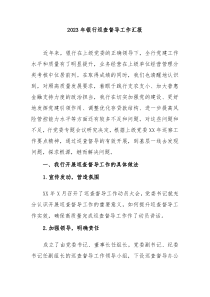 银行巡查督导工作顺利开展,问题整改有效推进,机制建设持续加强,成效显著,未来如何进一步提升?以下由网友整理分享的20XX年银行巡查督导工作汇报相关文档,供您学习参考,喜欢就分享吧!