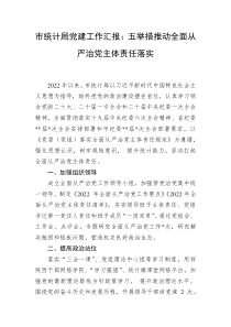 市统计局通过加强思想教育、完善制度建设、强化监督问责、深化作风建设、推进组织建设五项措施,推动全面从严治党主体责任落实。下面网友分享多篇相关内容供您参考学习,希望有您喜欢的。