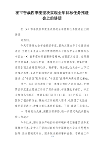 会议强调,需全力以赴冲刺年度目标,确保各项任务高质量完成,大家准备如何迎接挑战?下面是网友整理分享的在市奋战四季度坚决实现全年目标任务推进会上的讲话相关资料,供大家学习参考,喜欢就分享吧!
