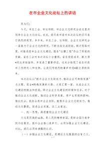 在市企业文化论坛上,强调了构建积极向上的企业文化对于促进企业发展的重要性,倡导创新与合作精神。以下是阿拉网友分享的“在市企业文化论坛上的讲话”,供您学习参考,希望有所用途!