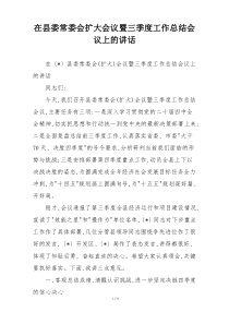 会议总结了三季度工作成果,部署下阶段重点任务,强调团结协作,奋力冲刺全年目标,大家是否准备好了?下面是网友整理编辑的在县委常委会扩大会议暨三季度工作总结会议上的讲话相关范文,供大家参考学习,喜欢就下载支持!