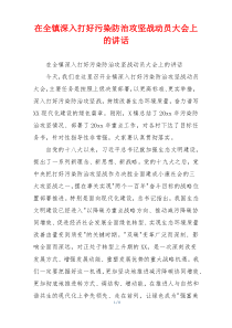 强调全面加强环境保护,推进绿色发展,号召全镇上下齐心协力,打赢污染防治攻坚战,共创美好家园!下面是小编为您整理的在全镇深入打好污染防治攻坚战动员大会上的讲话范例,仅供参考,希望对您有所帮助。