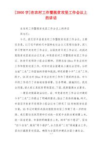 会议强调,要加大农村工作力度,推进脱贫攻坚,确保政策落实到位,实现全面小康目标。以下是小编为您整理分享的“[3900字]在农村工作暨脱贫攻坚工作会议上的讲话”相关内容,供您学习参考!