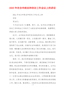 会议强调,要深化政法改革,加强信访工作,提升社会治理效能,维护社会稳定。下面是小编为您整理的2025年在全市政法和信访工作会议上的讲话范例,仅供参考,希望对您有所帮助。