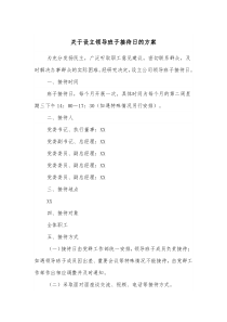 设立领导班子接待日旨在加强沟通促进理解提升工作效率密切联系群众。公文包网友为您分享整理的“关于设立领导班子接待日的方案”范文资料,以供您参考学习之用,希望喜欢。