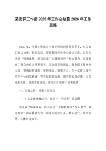 党群工作部深化组织建设,强化思想引领,提升服务能力,创新活动形式,明年如何进一步增强凝聚力?公文包网友为您分享整理的“某党群工作部2025年工作总结暨2026年工作思路(资料)”范文资料,以供您参考学习之用,希望喜欢。