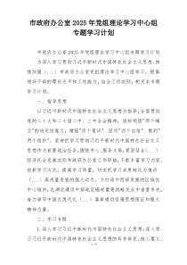 市政府办公室党组理论学习中心组将围绕核心思想、政策法规、业务知识等开展系统化专题学习活动。以下是小编为您整理分享的“市政府办公室2025年党组理论学习中心组专题学习计划”相关内容,供您学习参考!