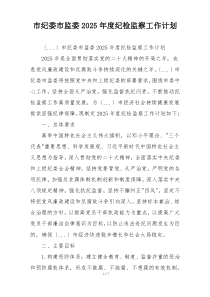 市纪委市监委将强化监督执纪问责,深化体制改革,提升队伍素质,坚决反腐正风肃纪!公文包网友为您分享整理的“市纪委市监委2025年度纪检监察工作计划”范文资料,以供您参考学习之用,希望喜欢。