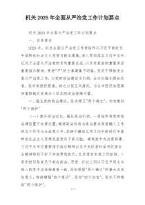加强政治建设,深化理论武装,严格纪律监督,推进作风建设,强化组织保障。下面是网友整理分享的机关2025年全面从严治党工作计划要点相关资料,供大家学习参考,喜欢就分享吧!