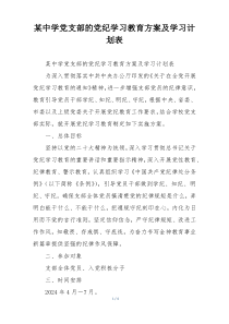 中学党支部制定党纪学习教育方案,包括理论学习、案例分析和实践活动,每周一次,持续半年,全面提升党员素质!以下是小编为您整理分享的“某中学党支部的党纪学习教育方案及学习计划表”相关内容,供您学习参考!