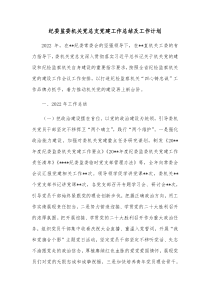 纪检监察机关党总支坚持党建引领,强化理论学习,严格组织生活,提升队伍素质,推进党风廉政建设,增强监督执纪效能。未来将深化作风建设,完善制度机制,加强教育培训,提高履职能力。下面是网友整理编辑的纪委监委机关党总支党建工作总结及工作计划相关范文,供大家参考学习,喜欢就下载支持!