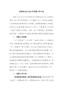 围绕中心工作强化政治引领,深化理论武装,加强组织建设,严格纪律作风,提升党建质量,如何确保各项任务落实到位?下面是网友整理编辑的某国有企业2023年党建工作计划相关范文,供大家参考学习,喜欢就下载支持!