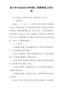 本学期将加强师资培训,丰富课程内容,提升学生综合素质,促进家校合作,共同助力孩子健康成长!公文包网友为您分享整理的“某小学20252025学年第二学期学校工作计划”范文资料,以供您参考学习之用,希望喜欢。