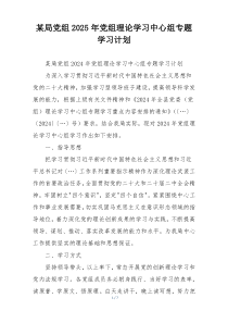 局党委理论学习中心组将深入学习党的创新理论,强化理想信念,提升政治素养,推动工作实践。公文包网友为您分享整理的“某局党委理论学习中心组2025年学习计划”范文资料,以供您参考学习之用,希望喜欢。