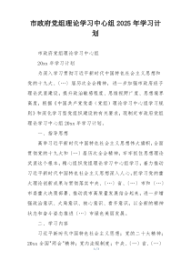 市政府党组理论学习中心组制定新学习计划,涵盖政治理论、政策法规、经济发展等内容,旨在提升领导力和决策水平。下面是小编为您整理的市政府党组理论学习中心组2025年学习计划范例,仅供参考,希望对您有所帮助。