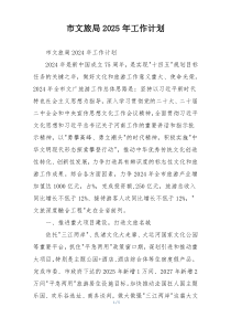 市文旅局将推进文化遗产保护传承加强旅游市场推广提升服务质量促进产业融合发展。公文包网友为您分享整理的“市文旅局2025年工作计划”范文资料,以供您参考学习之用,希望喜欢。