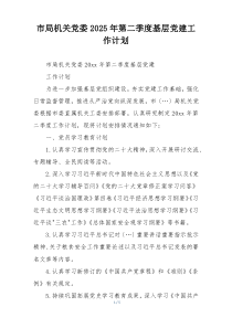 市局机关党委将深化基层党组织建设,加强党员教育培训,推进党建与业务深度融合,提升服务效能!下面是小编为您整理的市局机关党委2025年第二季度基层党建工作计划范例,仅供参考,希望对您有所帮助。