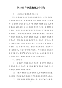家庭教育工作将聚焦提升家长教育能力,促进家校合作,优化教育资源配置,构建和谐家庭环境。下面是网友整理分享的市2025年家庭教育工作计划相关资料,供大家学习参考,喜欢就分享吧!
