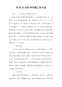 市XX办将加强双拥工作,深化军民融合,提升服务水平,广泛开展宣传教育活动,增强社会拥军优属意识。下面是小编为您整理的市XX办2025年双拥工作计划范例,仅供参考,希望对您有所帮助。