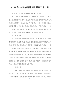 市XX办将围绕提升市民文明素质和社会文明程度,开展系列宣传教育活动,加强典型示范引领,推进志愿服务常态化。以下由网友整理分享的“市XX办2025年精神文明创建工作计划”相关材料,便您学习参考,喜欢就分享给朋友吧!