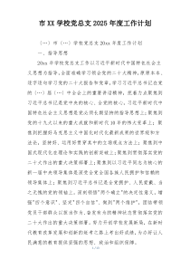 市XX学校党总支将深化党建引领,强化师德建设,推动教育教学改革,提升校园文化品质,激发师生创新活力!下面是小编为您整理的市XX学校党总支2025年度工作计划范例,仅供参考,希望对您有所帮助。