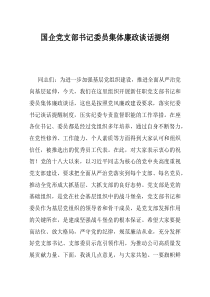 强调廉洁自律重要性,筑牢思想防线,严格遵守党纪国法,共同营造风清气正环境。下面是网友整理编辑的国企党支部书记委员集体廉政谈话提纲(资料)相关范文,供大家参考学习,喜欢就下载支持!