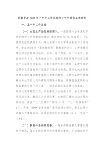 县教育局上半年完成多项教育改革,提升教学质量;下半年将推进师资培训,优化教育资源配置,加强校园安全建设。下面是网友整理编辑的县教育局2024年上半年工作总结和下半年重点工作计划相关范文,供大家参考学习,喜欢就下载支持!