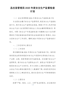 县应急管理局将加强安全生产监督,提升隐患排查治理力度,确保全县安全生产形势持续稳定!以下由网友整理分享的县应急管理局2025年度安全生产监督检查计划相关文档,供您学习参考,喜欢就分享吧!