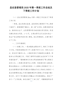 完成第一季度应急管理工作目标,提升响应速度与处理效率;下季度将加强培训演练,提高队伍专业水平,进一步完善应急预案,如何确保措施落实到位?下面是小编为您整理的县应急管理局2025年第一季度工作总结及下季度工作计划范例,仅供参考,希望对您有所帮助。