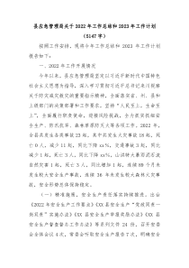 县应急管理局强化应急管理体系建设,提升灾害应对能力,保障人民生命财产安全;明年将继续加强队伍建设,完善应急预案,推进科技信息化建设。下面是小编为您整理的县应急管理局关于2022年工作总结和2023年工作计划范例,仅供参考,希望对您有所帮助。