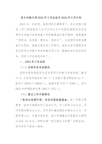 县乡村振兴局在过去一年中推动了多项产业发展和基础设施建设,有效提升了乡村经济活力;新的一年将继续深化政策落实,加大扶持力度,促进农民增收。下面是小编为您整理的县乡村振兴局2023年工作总结及2024年工作计划范例,仅供参考,希望对您有所帮助。