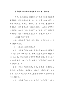 区民政局过去一年着力提升民生服务,强化社区治理,新的一年将继续优化服务体系,深化改革创新,如何进一步提高群众满意度?公文包网友为您分享整理的“区民政局2023年工作总结及2024年工作计划”范文资料,以供您参考学习之用,希望喜欢。
