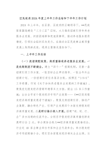 区民政局上半年完成了多项社会救助和社区服务工作,下半年将继续推进养老服务体系建设,加强基层社会治理。公文包网友为您分享整理的“区民政局2024年度上半年工作总结和下半年工作计划”范文资料,以供您参考学习之用,希望喜欢。