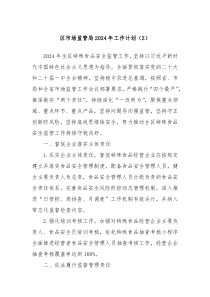 区市场监管局将加强食品安全监管,优化营商环境,提升服务效能,促进市场健康发展!以下由网友整理分享的区市场监管局2024年工作计划2相关文档,供您学习参考,喜欢就分享吧!