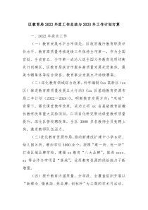 区教育局总结过去一年工作成果,规划新一年重点任务,如何进一步提升教学质量?下面是网友整理编辑的区教育局2022年工作总结和2023年工作计划相关范文,供大家参考学习,喜欢就下载支持!