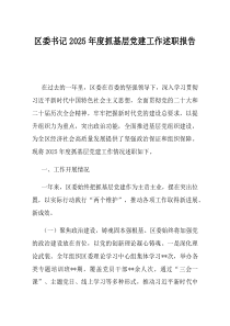 报告全面总结了基层党建工作的推进情况,强调了组织建设、党员教育和服务群众等方面的成效,展现了党建工作的新气象!公文包网友为您分享整理的“区委书记2025年度抓基层党建工作述职报告(资料)”范文资料,以供您参考学习之用,希望喜欢。