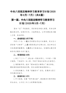 中央八项规定精神强调改进工作作风,密切联系群众,反对形式主义、官僚主义,厉行勤俭节约。以下是小编为您整理分享的“中央八项规定精神学习教育学习计划(2025年3月-7月)精选8篇材料参考”相关内容,供您学习参考!