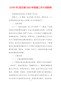 党支部将加强组织建设,提升党员素质,优化财政管理,确保经费合理使用,推动党建工作深入开展。以下是小编为您整理分享的“[4700字]党支部2025年党建工作计划财政”相关内容,供您学习参考!