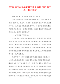围绕中心工作,加强组织建设,提升党员素质,推动企业发展;继续深化学习教育,强化队伍建设,增强服务意识,促进企业高质量发展。公文包网友为您分享整理的“[5300字]2025年党建工作总结和2025年工作计划公司版”范文资料,以供您参考学习之用,希望喜欢。