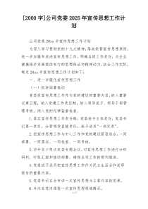 公司党委将深化理论学习,加强舆论引导,提升文化自信,创新宣传方式,凝聚奋进力量!以下由网友整理分享的“[2000字]公司党委2025年宣传思想工作计划”相关材料,便您学习参考,喜欢就分享给朋友吧!