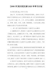 机关党支部将围绕党的理论政策法规开展系统学习 加强党性修养 提升业务能力 促进工作实效公文包网友为您分享整理的“[2000字]机关党支部2025年学习计划”范文资料,以供您参考学习之用,希望喜欢。