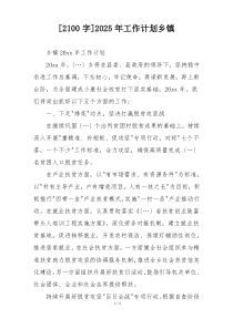 推进乡村振兴战略实施,加强基础设施建设,提升公共服务水平,促进产业融合发展。以下由网友整理分享的[2100字]2025年工作计划乡镇相关文档,供您学习参考,喜欢就分享吧!