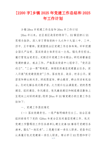 党建工作成效显著,组织建设更加坚实,党员队伍活力增强,服务群众能力提升,未来继续深化创新举措,推动高质量发展!以下由网友整理分享的“[2200字]乡镇2025年党建工作总结和2025年工作计划”相关材料,便您学习参考,喜欢就分享给朋友吧!