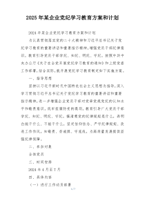 企业将开展系列党纪学习活动 强化党员纪律意识 提升队伍整体素质 促进廉洁文化建设 增强组织凝聚力和战斗力。下面是网友整理编辑的2025年某企业党纪学习教育方案和计划相关范文,供大家参考学习,喜欢就下载支持!